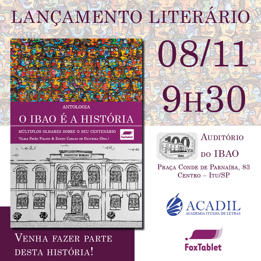 O evento de lançamento acontecerá no prédio centenário do IBAO, à Praça Conde de Parnaíba, 83, no centro de Itu, aberto ao público, reunindo autores e interessados.